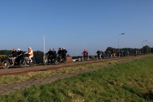 Het Vigeta-peloton op de dijk richting het stadje Tholen